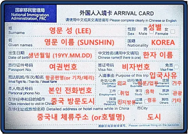 하지만, 중국 입국 카드는 반드시 작성해야 합니다. 작성하지 않으면 입국이 불가능합니다.